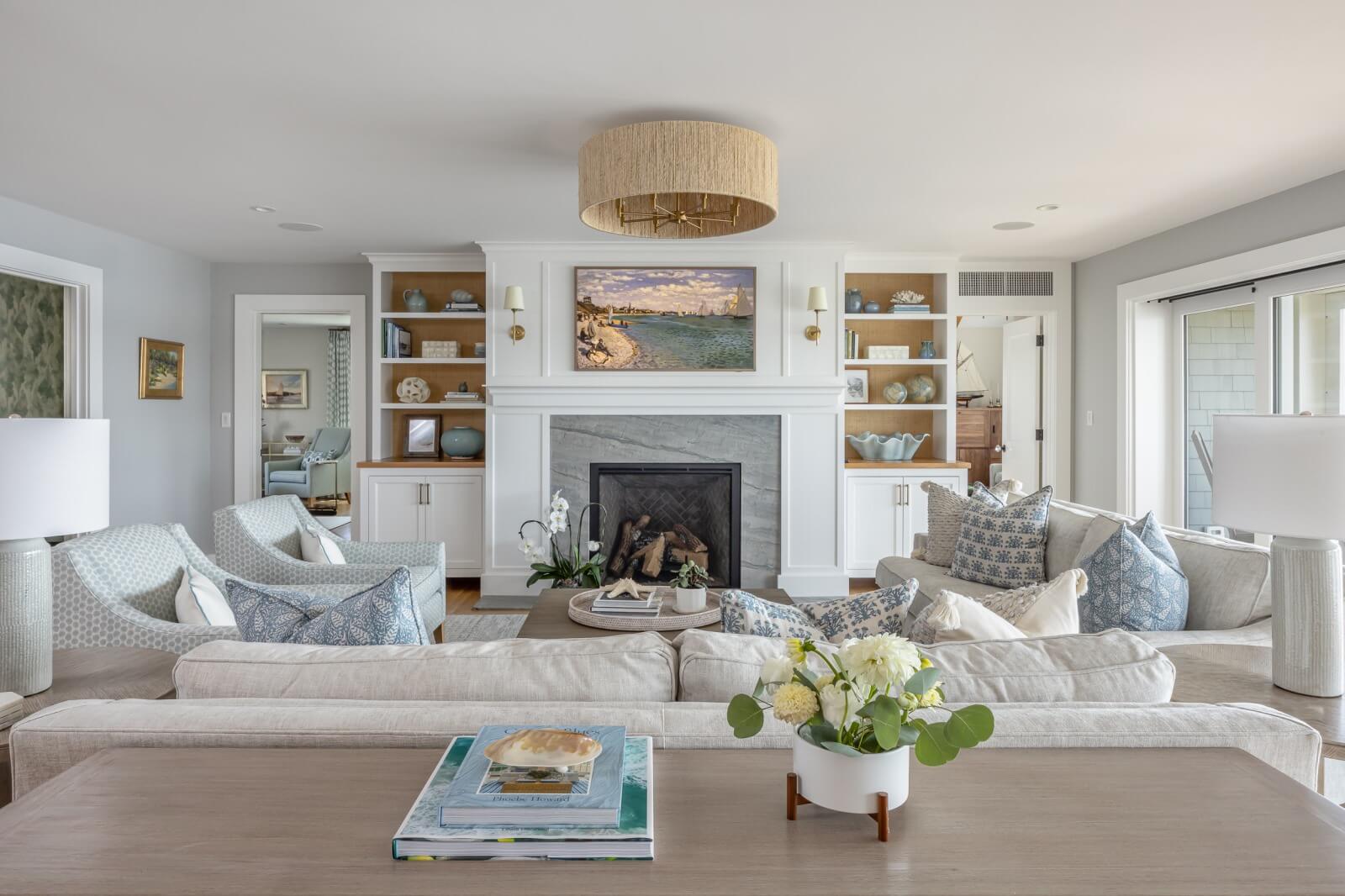 New Home Construction - Living Room Mantel and bookcase. Hidden duct work.