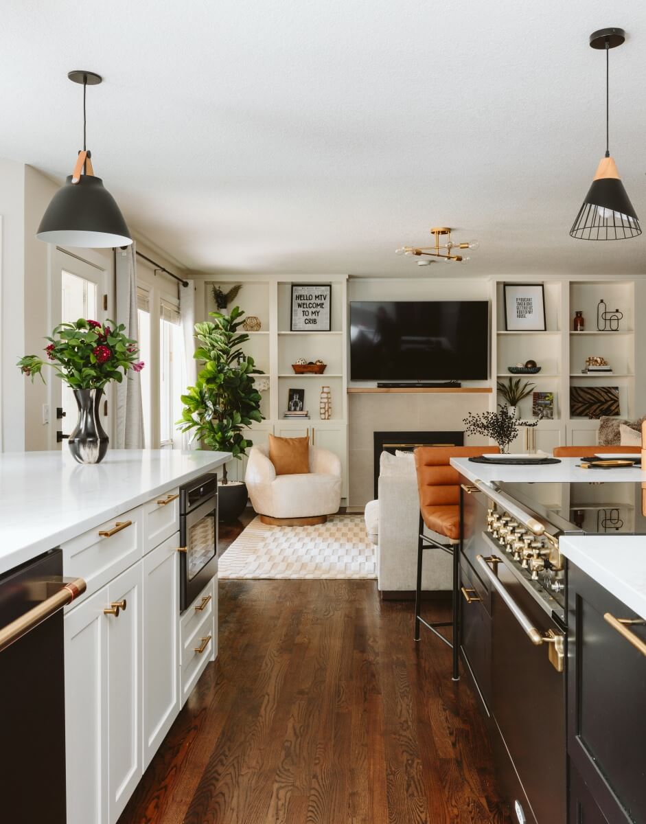 Following the successful kitchen extension for the same clients, they immediately hired us to transform the built-ins around their fireplace to create a cohesive look for their dining and living space. We selected cabinetry that matched their kitchen design, seamlessly integrating the two areas. We built a custom mantel, and changed the tile surround. This transformation not only enhanced the aesthetic appeal of the space but also elevated the overall ambiance, making it feel more unified and inviting. The result is a beautifully coordinated environment that reflects the family's style and enhances their enjoyment of both the dining and living areas.