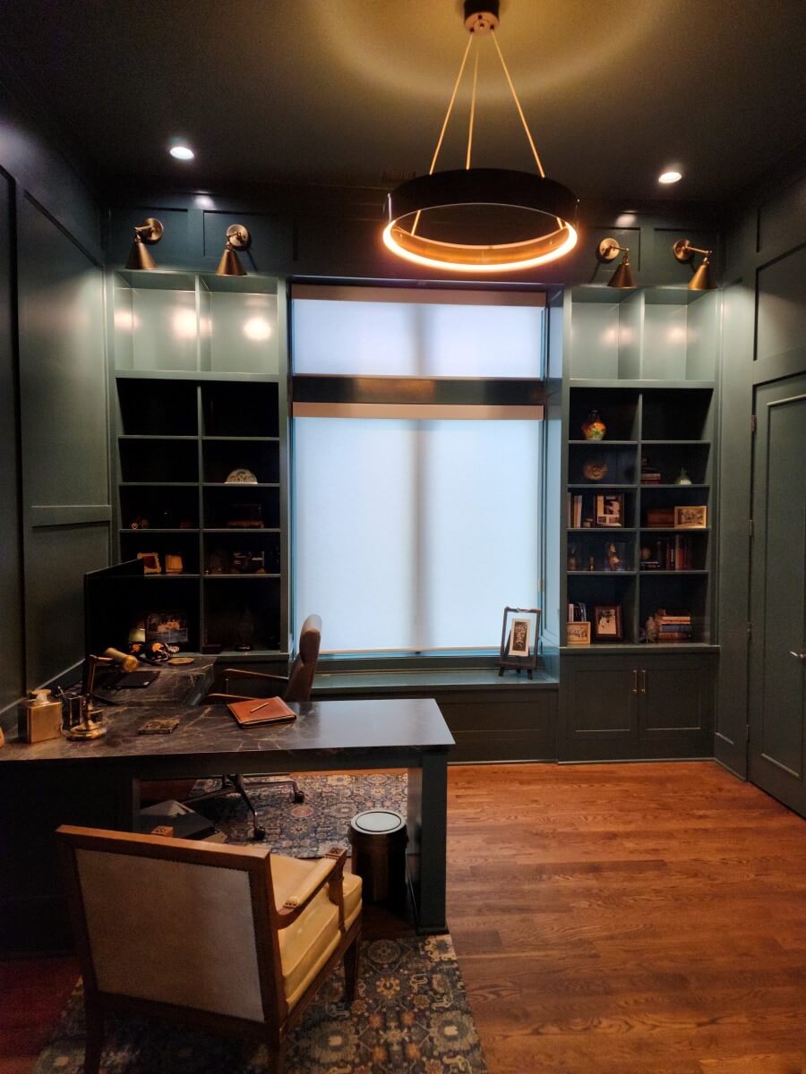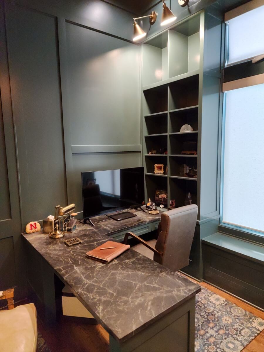 Part of a full house remodel, our client wanted a simple but stunning office layout. The bookcases ran to the window jambs for a tight fit, along with matching trim though out.